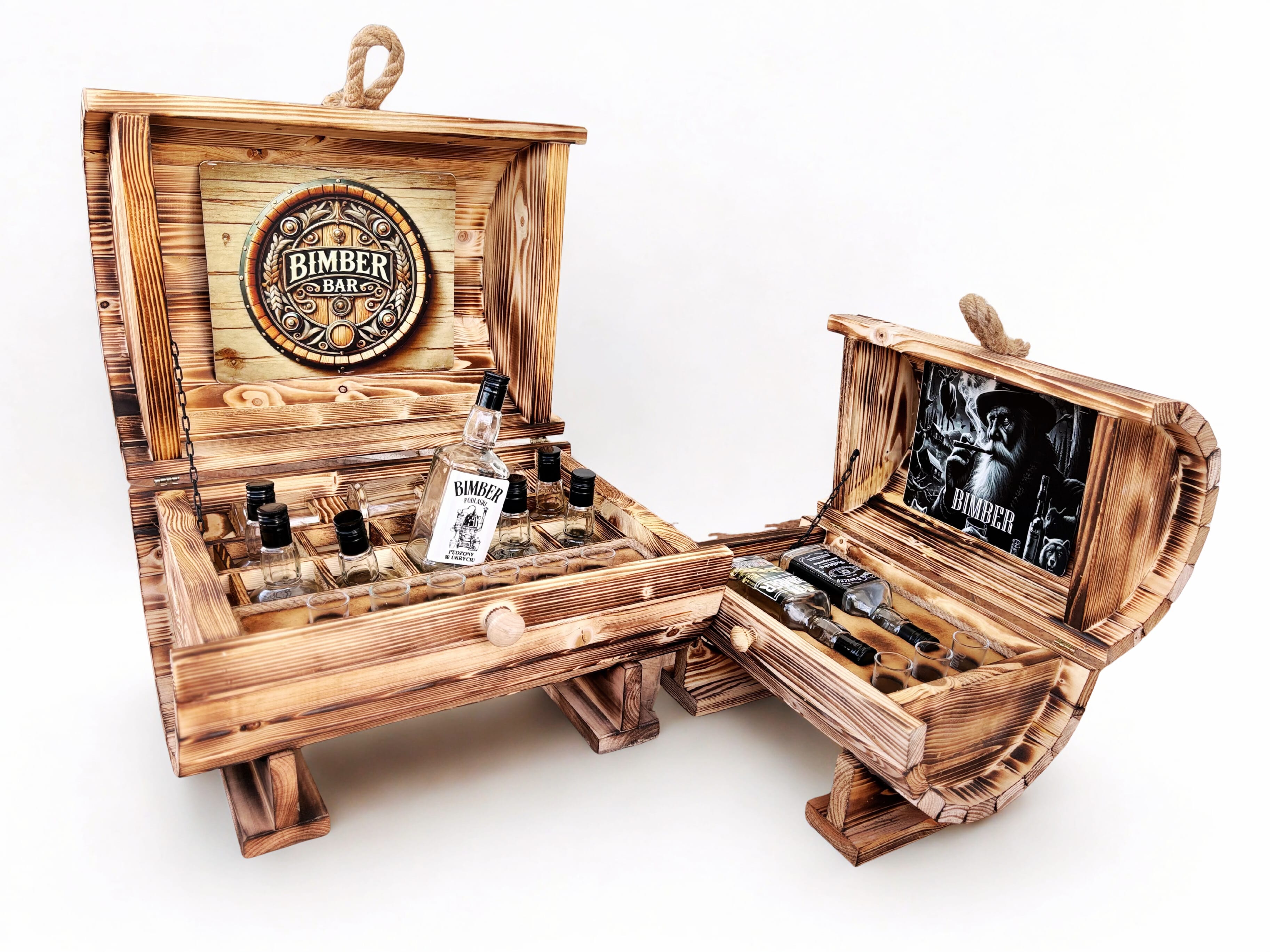 Mała drewniana beczka na alkohol na prezent to idealny wybór dla osoby, która ceni sobie dobry trunek, ale nie potrzebuje wielkich zestawów – wystarczy jej kompaktowy barek z dwoma butelkami i trzema kieliszkami do okazjonalnej degustacji.